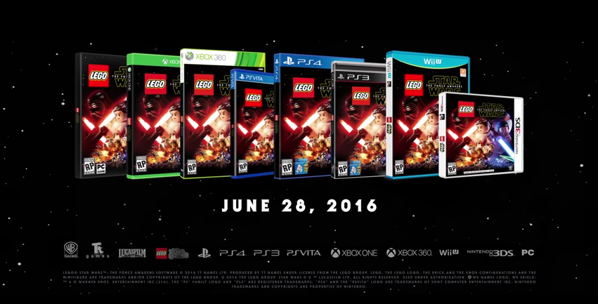 LEGO Star Wars: The Force Awakens será puesto a la venta el próximo 28 de junio, y estará disponible para prácticamente todas las consolas, ya que se anunciaron versiones para Nintendo 3DS, PS3, PS4, PS Vita, Wii U, PC, Xbox 360, y Xbox One.