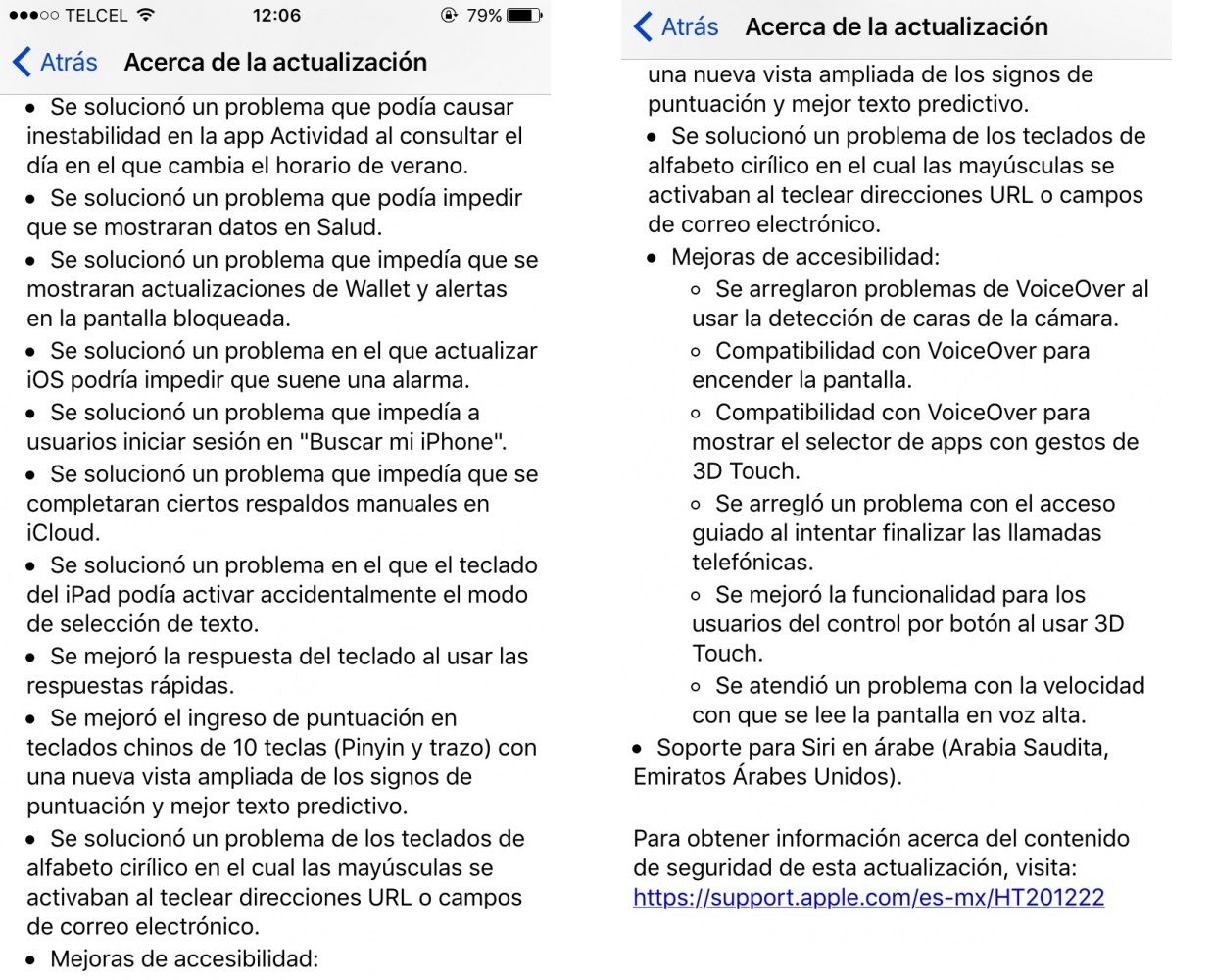 Otra es que ahora iBooks funciona con 3D Touch, compatibilidad del iPhone con el adaptador de cámara USB, mejoras en la aplicación de Podcasts, algunas mejoras de accesibilidad y diferentes correcciones de errores orientadas a las aplicaciones de Apple, entre otras.