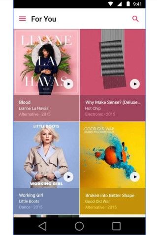 Apple Music para Android requiere Android 4.3 o posterior –ya sea en smartphones o tablets- y está diseñado para parecerse a una clásica aplicación de este sistema operativo.