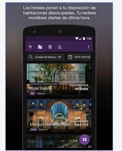 Ideal para reservar a través de tu smartphone o tablet. Es muy fácil de usar y en cuestión de minutos te permite tener una habitación que se ajuste a tus necesidades a los mejores precios. Puedes encontrar hoteles en México y 500 destinos más alrededor del mundo.