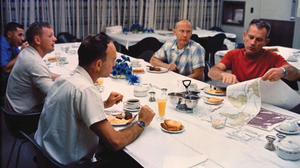 8:48.- Desde la sala de control hacen un resumen de las noticias, incluyendo las deportivas, a los astronautas, a los que informan de que el vicepresidente de EE.UU., Spiro Agnew, había puesto el objetivo de poner a un hombre en Marte en el año 2000.