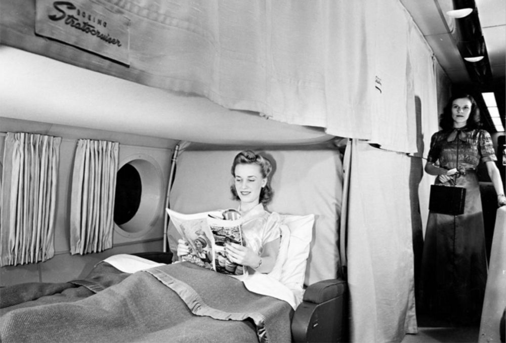 El Stratoliner solamente tenía espacio para 33 pasajeros y cinco miembros de la tripulación, pero fue hasta los años 40 cuando el servicio en el avión como ahora lo conocemos, empezó.