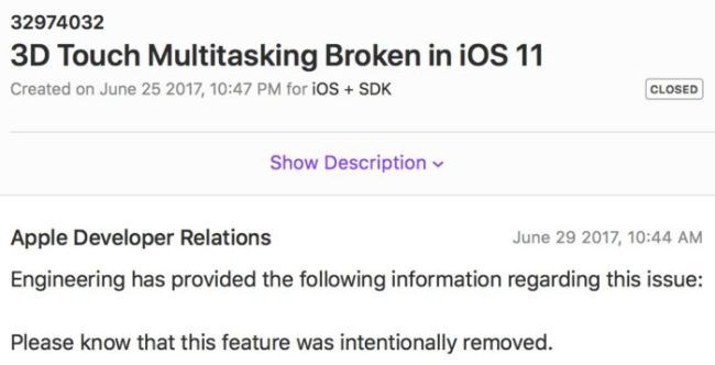 Fue el desarrollador Bryan Irace quien contactó con Apple para comprobar si se trataba de un error en las betas que se habían presentado o era algo realizado intencionadamente, a lo que un ingeniero de Apple le contestó vía Twitter: “Por favor, sepa que esta característica se ha extraído intencionadamente”.