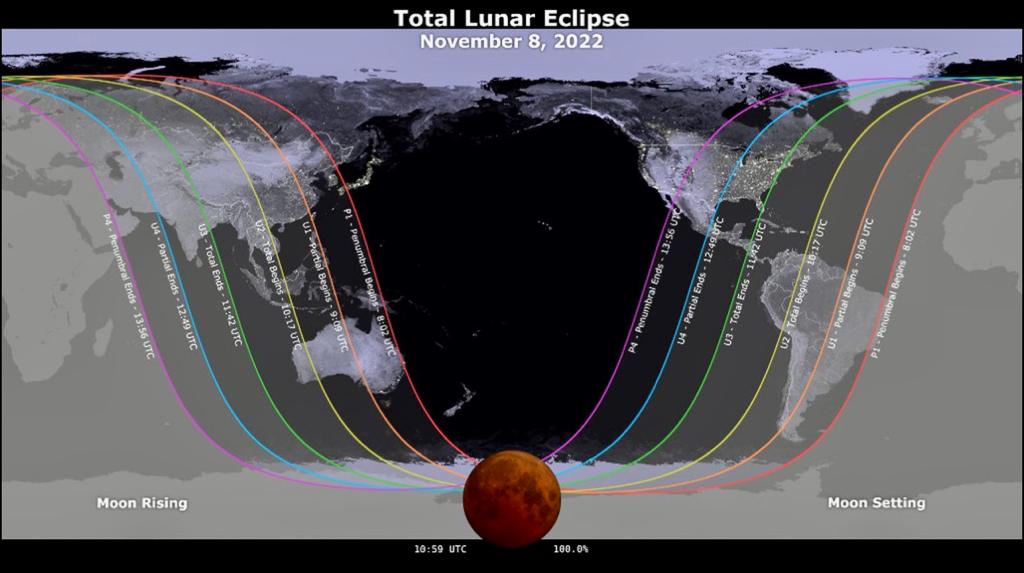 En la madrugada de este martes 8 de noviembre tendrá lugar un eclipse total de Luna visible en México, el este de Asia, Australia, Canadá, Estados Unidos, Centroamérica, Colombia y las regiones más boreales de Perú y Venezuela.