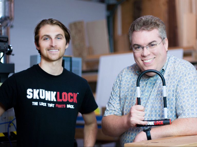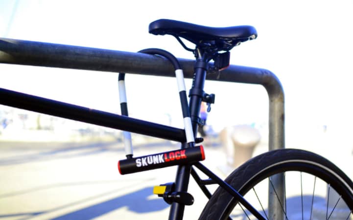 Skunk Lock es un candado de bicicleta de acero en forma de U que tiene una capacidad muy peculiar: en su interior tiene gases malolientes que permiten ahuyentar a los ladrones.