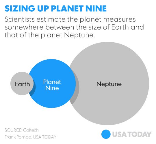 Batygin y Brown han inferido la existencia del planeta a partir del movimiento de varios planetas enanos recientemente descubiertos en los límites del Sistema Solar. Las órbitas de los cuerpos se ven influenciadas por la fuerza de gravedad de un planeta oculto. Por lo tanto, dicha inferencia radica en que el planeta nueve debe ser lo suficientemente grande como para tener ese efecto.