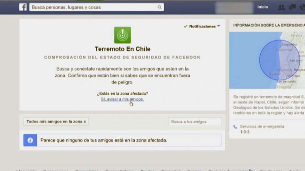 La herramienta de geolocalización Safety Check fue creada para que las personas del área afectada de Chile puedan dar a conocer su estado, así como informarse sobre el de sus amigos y familiares.
