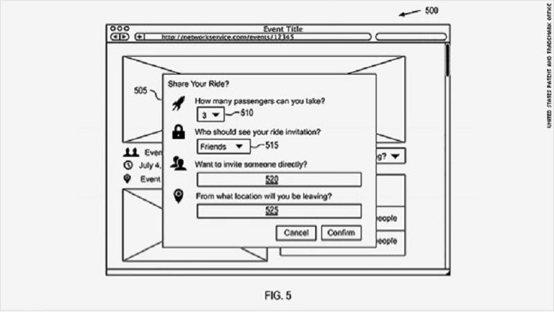 Dicho diagrama de la solicitud de patentes de Facebook revelan la posible apariencia de la función para compartir viajes hacia eventos.
