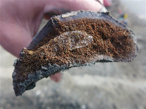 Una muestra de hueso congelado de dinosaurio tras una excavación en Alaska. Foto de AP