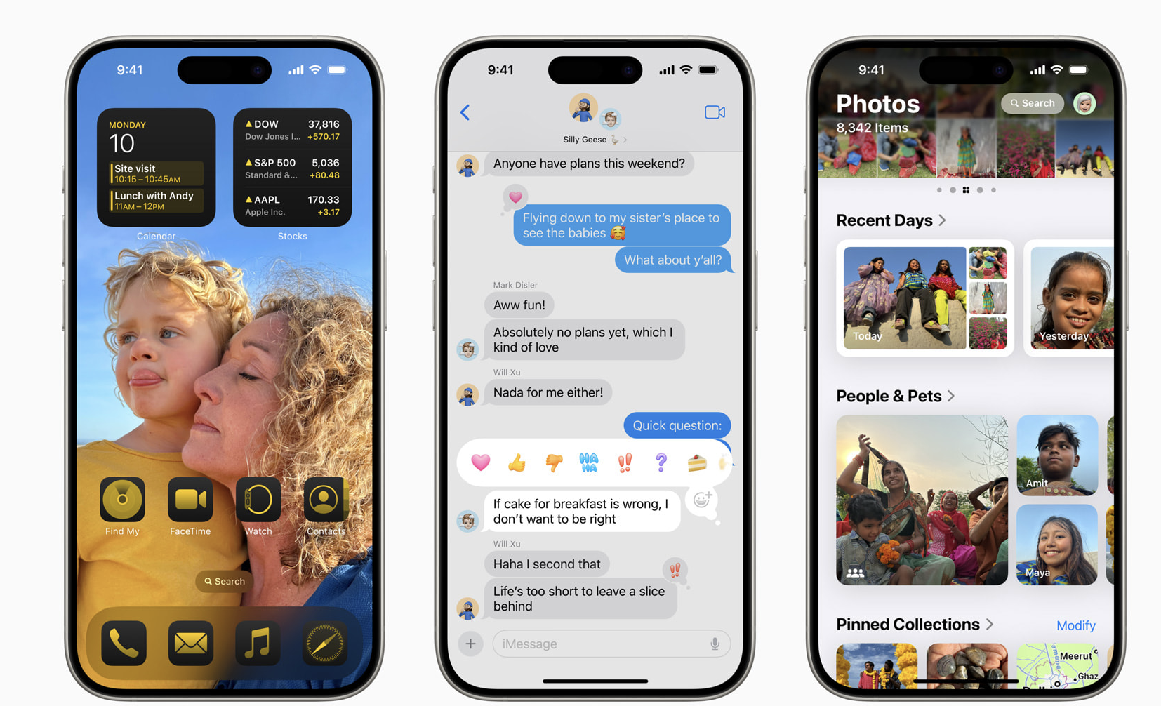 Los usuarios de iPhone, ahora podrán organizar apps y widgets en cualquier espacio vacío en la pantalla de inicio, personalizar los botones en la parte inferior de la pantalla bloqueada y acceder rápidamente a más controles en el Centro de Control. Las fototecas ahora se organizan de forma automática en una vista unificada en Fotos, y nuevas y prácticas colecciones permiten tener las favoritas siempre a mano. Mail simplifica la bandeja de entrada al organizar los correos en categorías usando inteligencia en el dispositivo, y llegan nuevos efectos de texto a iMessage. Gracias al poder de la misma tecnología revolucionaria que hace posibles las capacidades satelitales del iPhone, los usuarios ahora pueden comunicarse vía satélite en la app Mensajes cuando no hay conexión celular ni red Wi-Fi disponible.