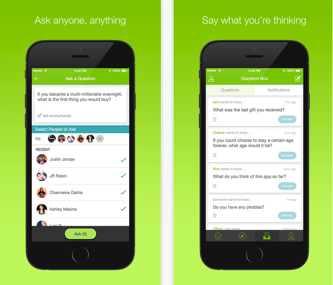 ¿Después? Solo basta hacer una pregunta, la cual puede hacerse de forma anónima, o responder las cientos de cuestiones que aparecen en la aplicación, las cuales vienen enlistadas por fecha y hora, o por cercanía.