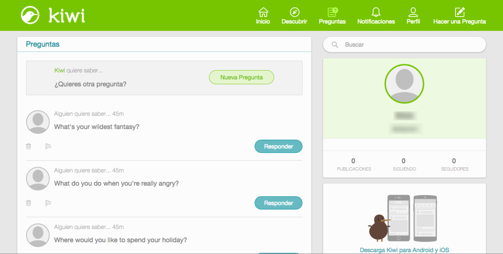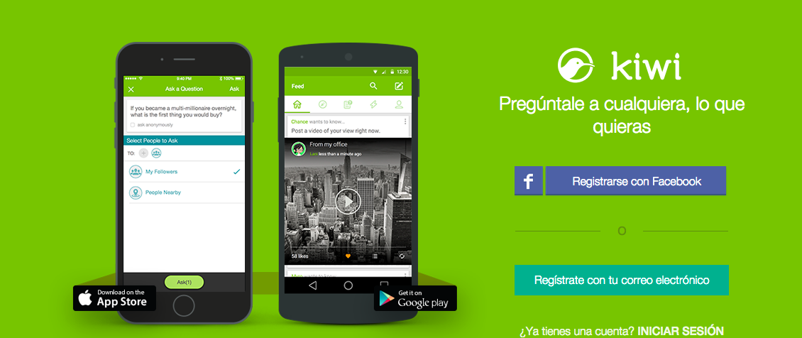 La aplicación es una especie de “chismógrafo”, en el cual los usuarios se inscriben por medio de su cuenta de Facebook o de correo electrónico, para hacer preguntas a sus amigos o para demás usuarios de Kiwi, y responder otras.