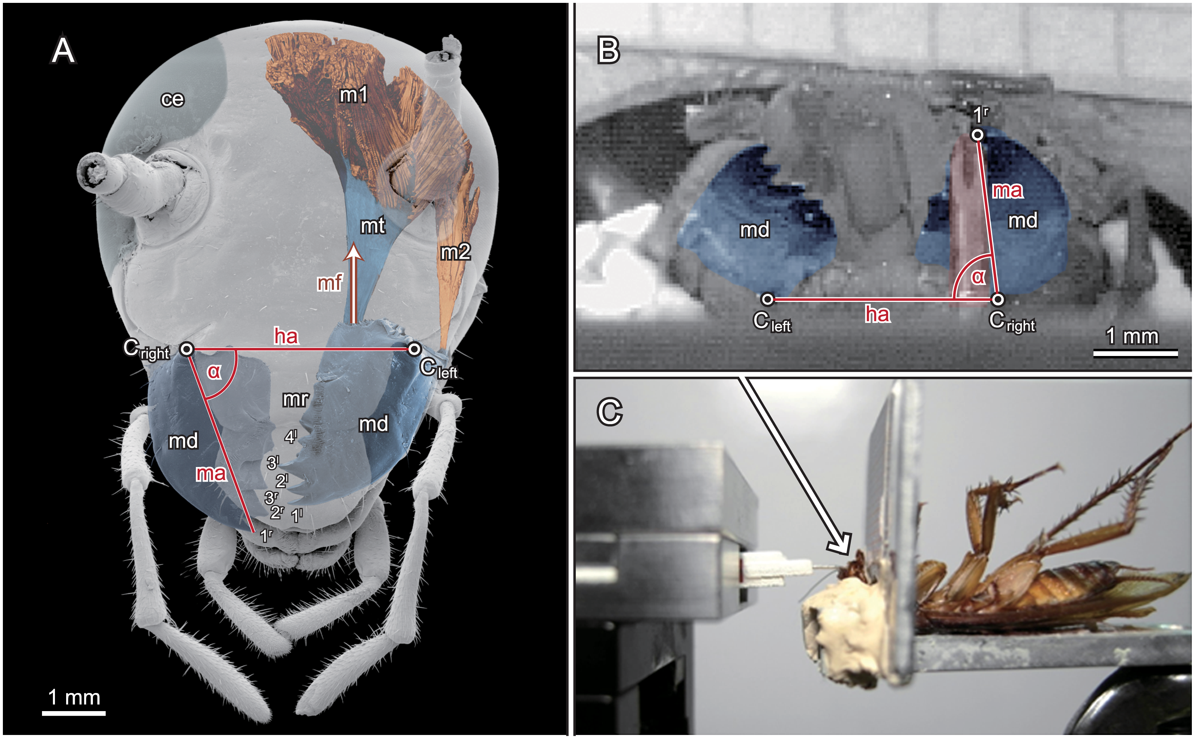 El estudio se realizó colocando a la cucaracha boca arriba y sujetando su boca con un tipo guillotina. Después colocaban un sensor enfrente de sus mandíbulas el cual medía la fuerza de la mordida.
