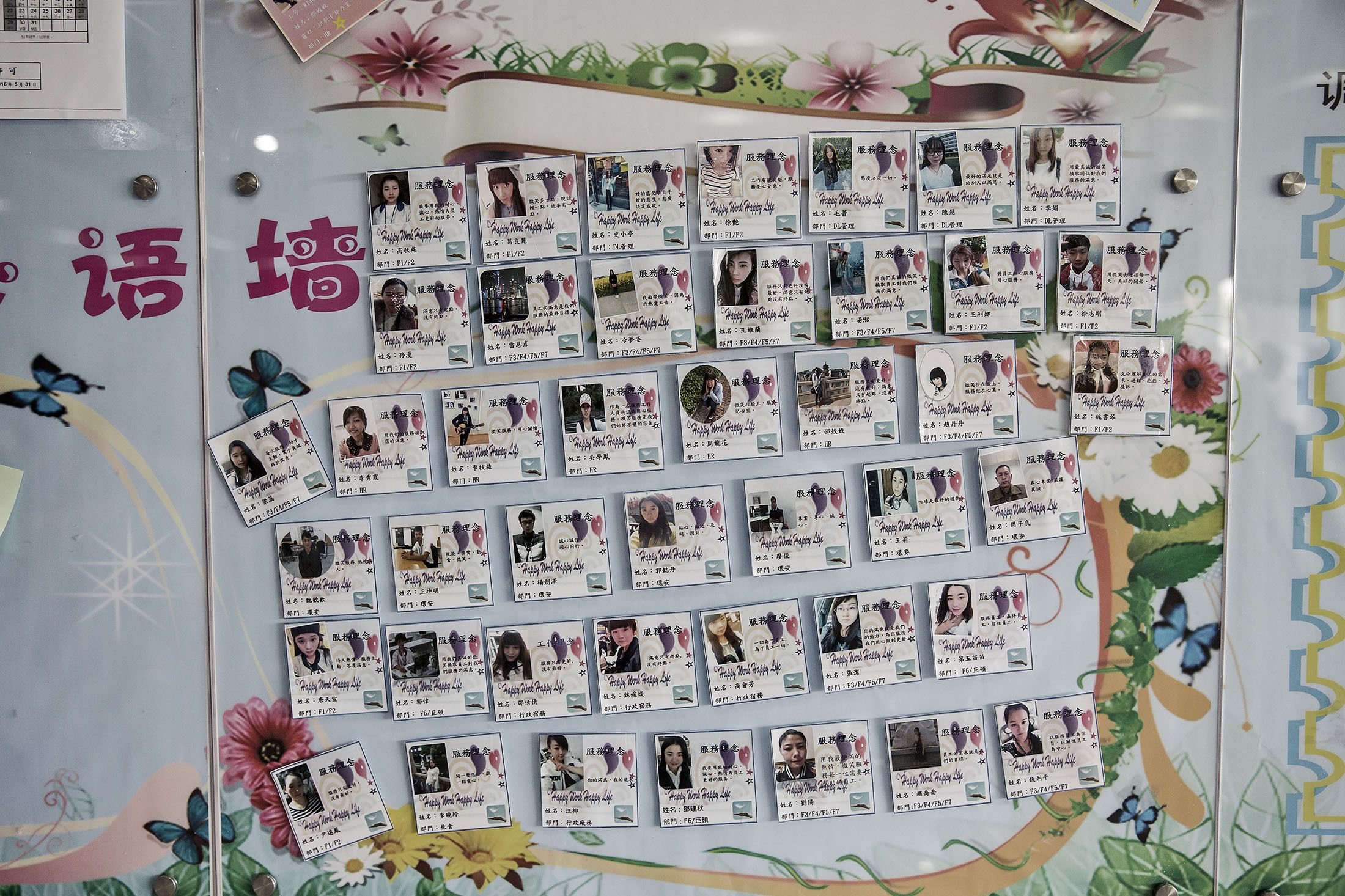 Una vez que se visten con sus uniformes que comprenden chamarras rosas, redes de cabello azules y pantalones negros; todos se forman en varias filas para que el supervisor pueda pasar lista, la cual debe ser verificada con una revisión facial del empleado.