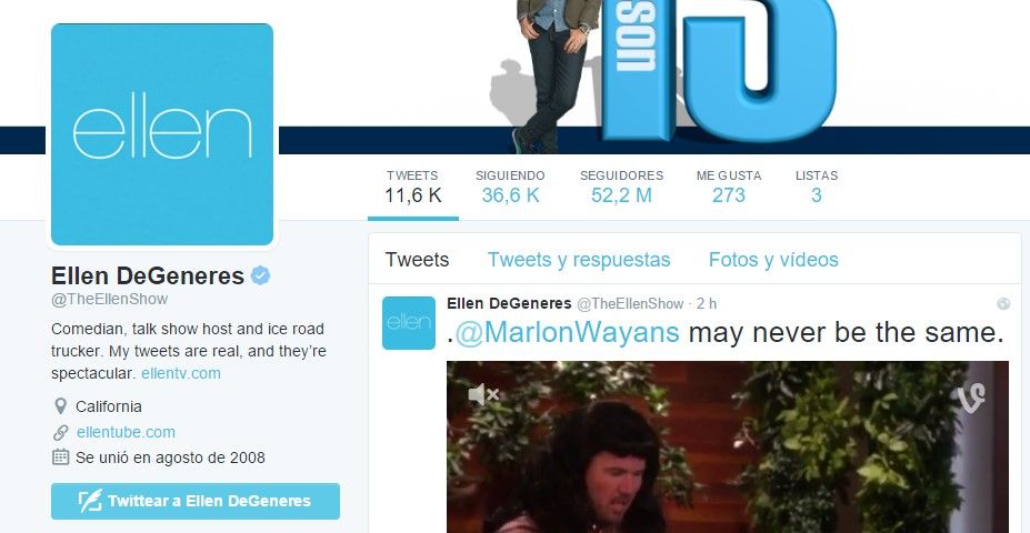 Las 10 cuentas con más seguidores en Twitter - ellen-dege
