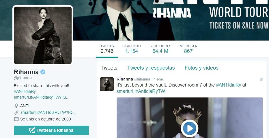Las 10 cuentas con más seguidores en Twitter - rihanna
