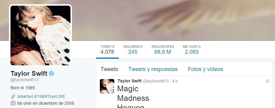 Las 10 cuentas con más seguidores en Twitter - taylor-swift