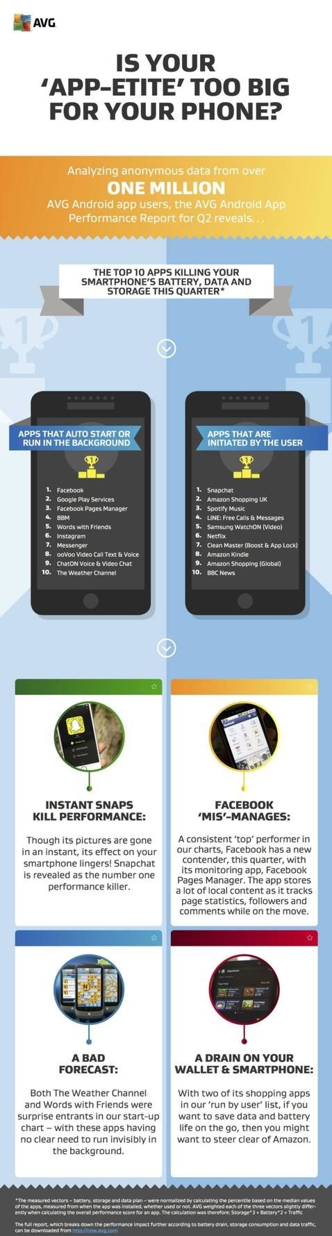 Facebook y Snapchat son, según AVG, las apps que más perjudican a los smartphones
