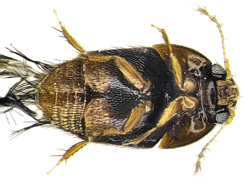 El Paddington oso Phytotelmatrichis es un diminuto escarabajo de aproximadamente un milímetro vive en pequeños receptáculos de agua que se crean en las base de las bromelias.
