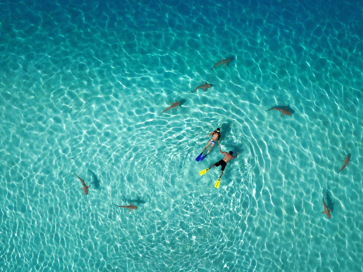 Finalmente, en la categoría de Naturaleza se encuentra a una pareja nadando entre tiburones en las islas Polinesia.