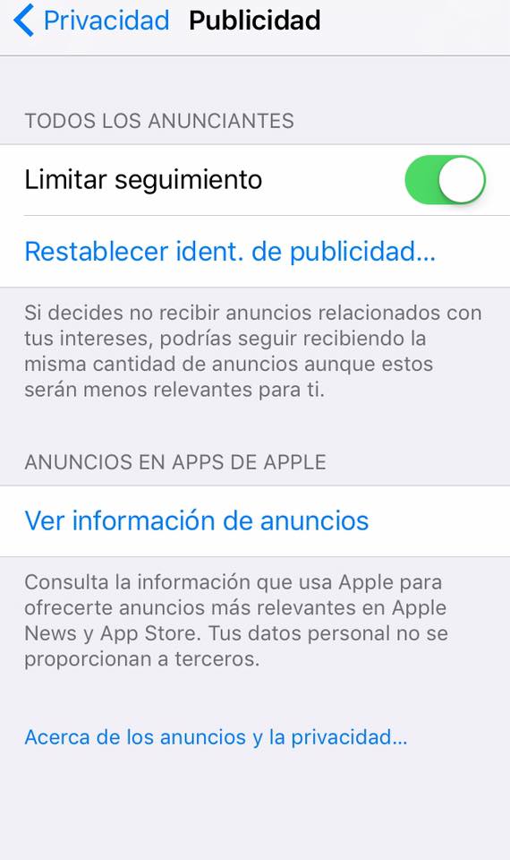 Para activar la opción de limitar este tipo de publicaciones hay que ir a Configuración, privacidad, publicidad y activar la casilla de Limitar seguimiento.