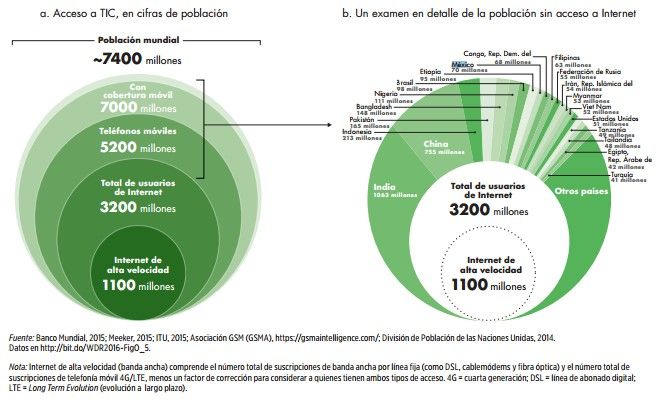 En el trabajo del Banco Mundial llamado Dividendos Digitales, basado en el Informe sobre el desarrollo mundial 2016, se estableció que en México son 70 millones de mexicanos sin acceso al internet.