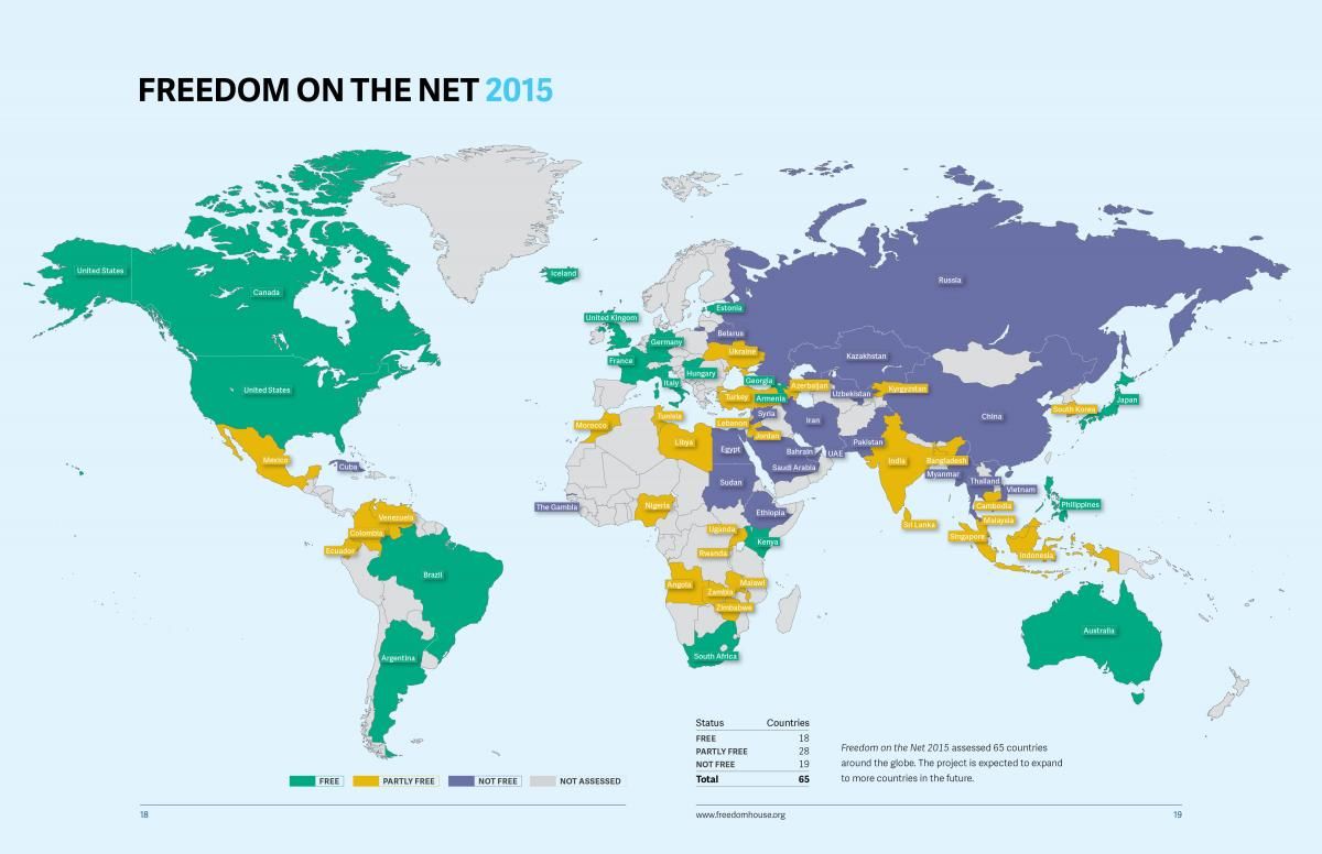 La organización Freedom House elaboró el informe “Libertad en Internet 2015”, que se refiere al estado de la libertad en la red en los principales países del mundo.