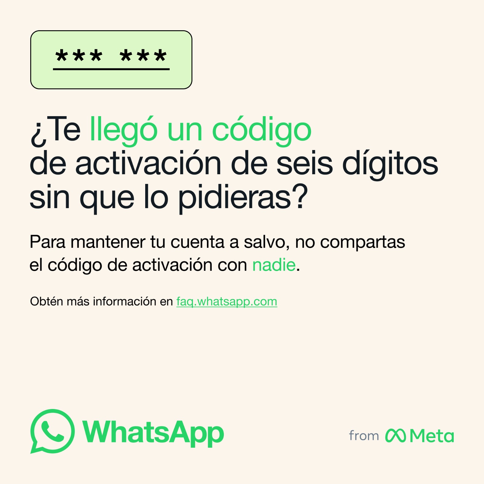 Al dar de alta el número celular se pide no compartir con ninguna persona el código de activación, que consta de 6 dígitos y se envía vía mensaje SMS.