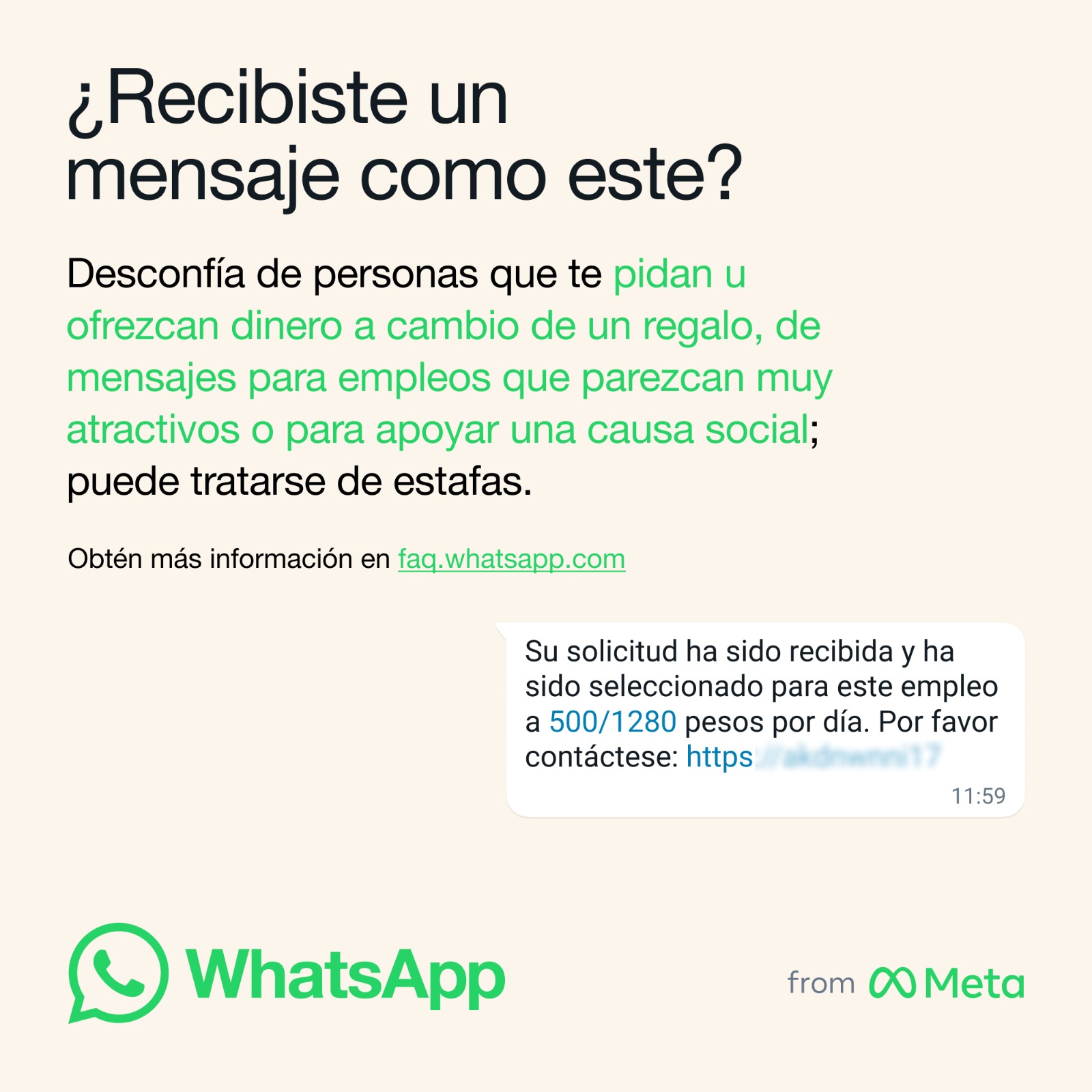 También se llama a desconfiar de mensajes que aludan a regalos, atractivos empleos o causas sociales que incluyan ingresar a un enlace. Podría tratarse de una estafa.