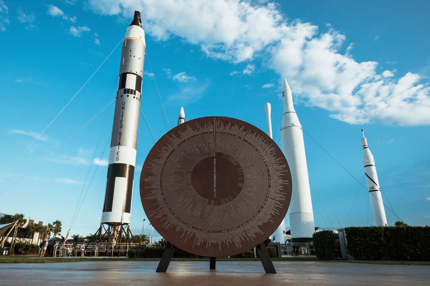 Su regalo de cumpleaños se lo entregó su amigo Stephen Attenborough, jefe comercial de Virgin Galactic: una escultura de metal titulada “En los hombros de gigantes”, en la que aparecen inscritos todos los hitos de la carrera aérea y espacial.