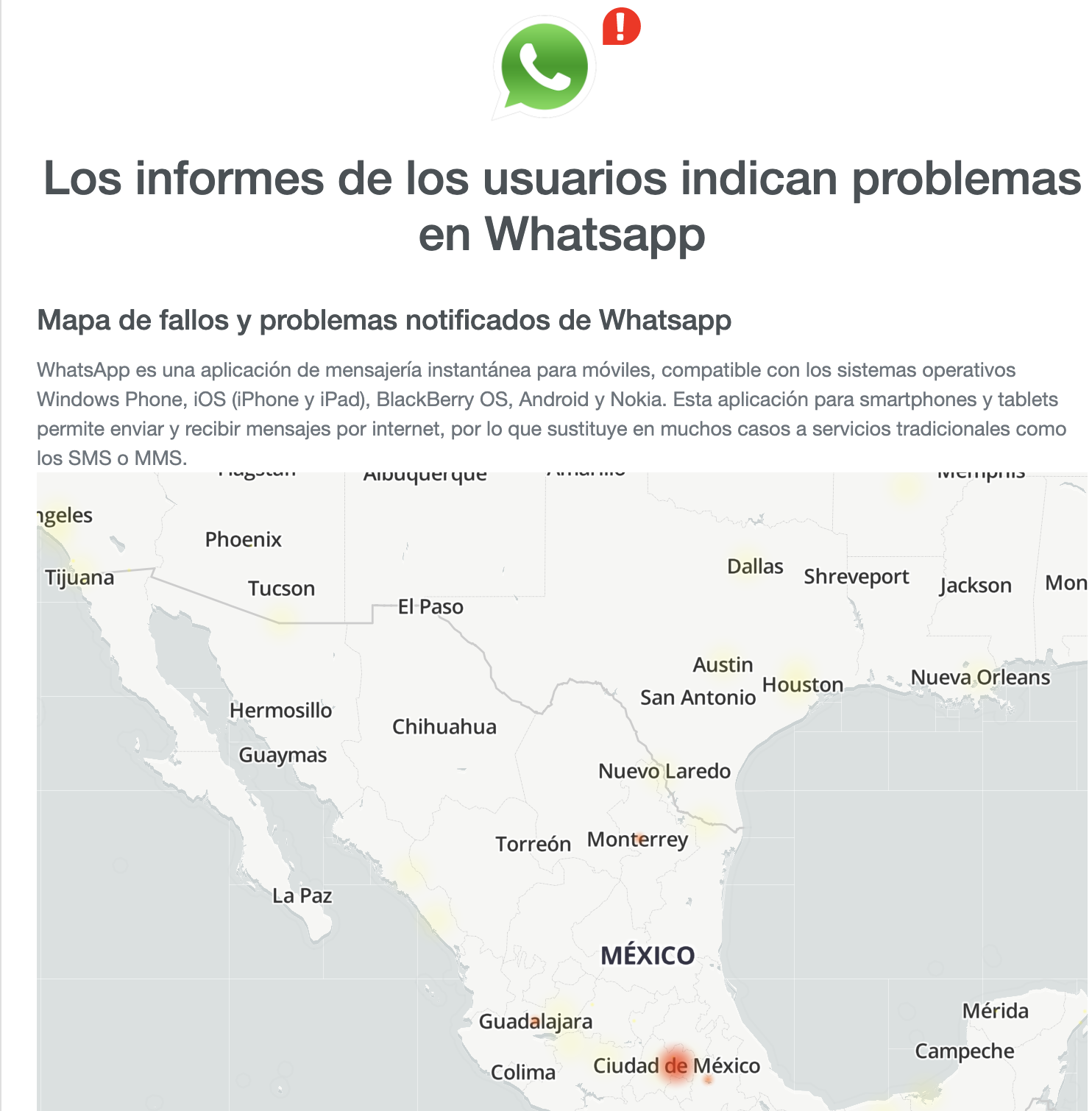 En WhatsApp el 56 por ciento de los usuarios reportó que no podía enviar ni recibir mensajes.