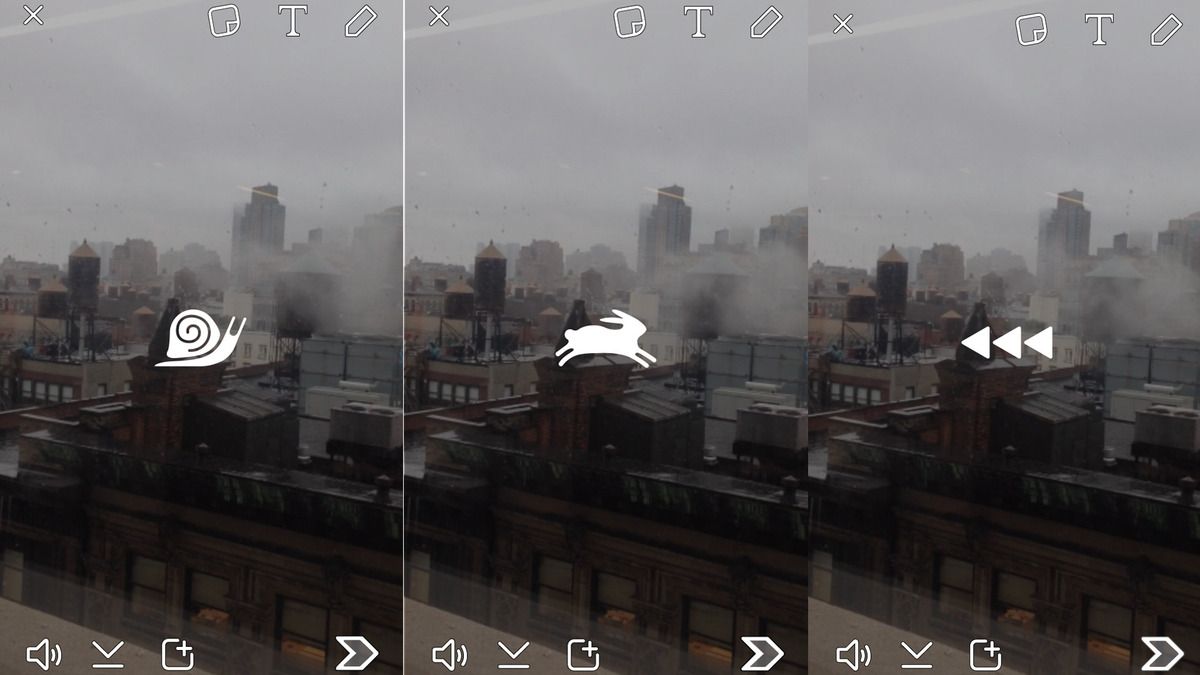 La aplicación lanzó tres “modificadores de velocidad”, funciones que te permiten grabar video en cámara lenta, avance rápido o en reversa.