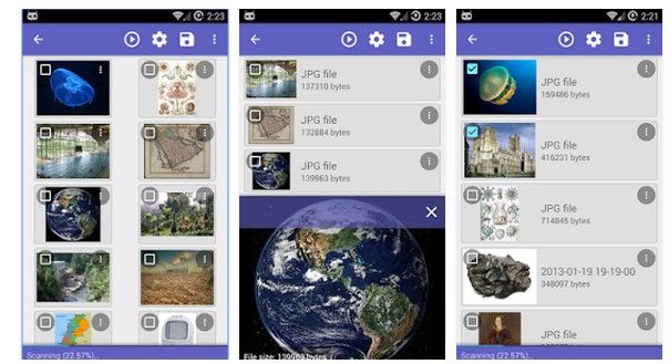 Recupera archivos borrados de la memoria interna del dispositivo así como de otros dispositivos de almacenamiento externo y los almacená directamente en Dropbox o Google Drive.