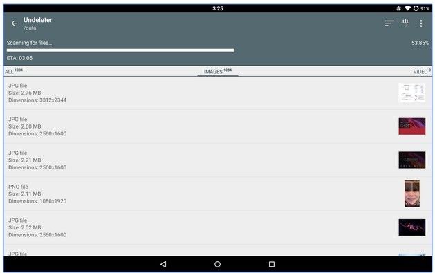 Para que pueda funcionar correctamente, debemos concederle permisos de superusuario. Al ejecutar la aplicación veremos un listado con los directorios del dispositivo y la herramienta en búsqueda mostrará las imágenes borradas.