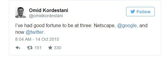 Omid Kordestani, exempleado de Google, será el nuevo presidente ejecutivo del consejo de administración de Twitter.