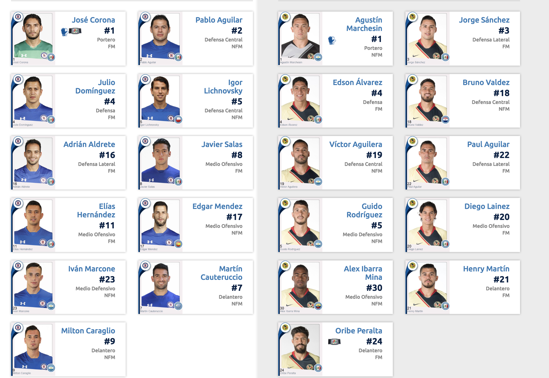 Agustín Marchesín, Jorge Sánchez, Emanuel Aguilera, Bruno Valdez, Paul Aguilar, Guido Rodríguez, Edson Álvarez, Diego Lainez, Oribe Peralta, Renato Ibarra, Henry Martin