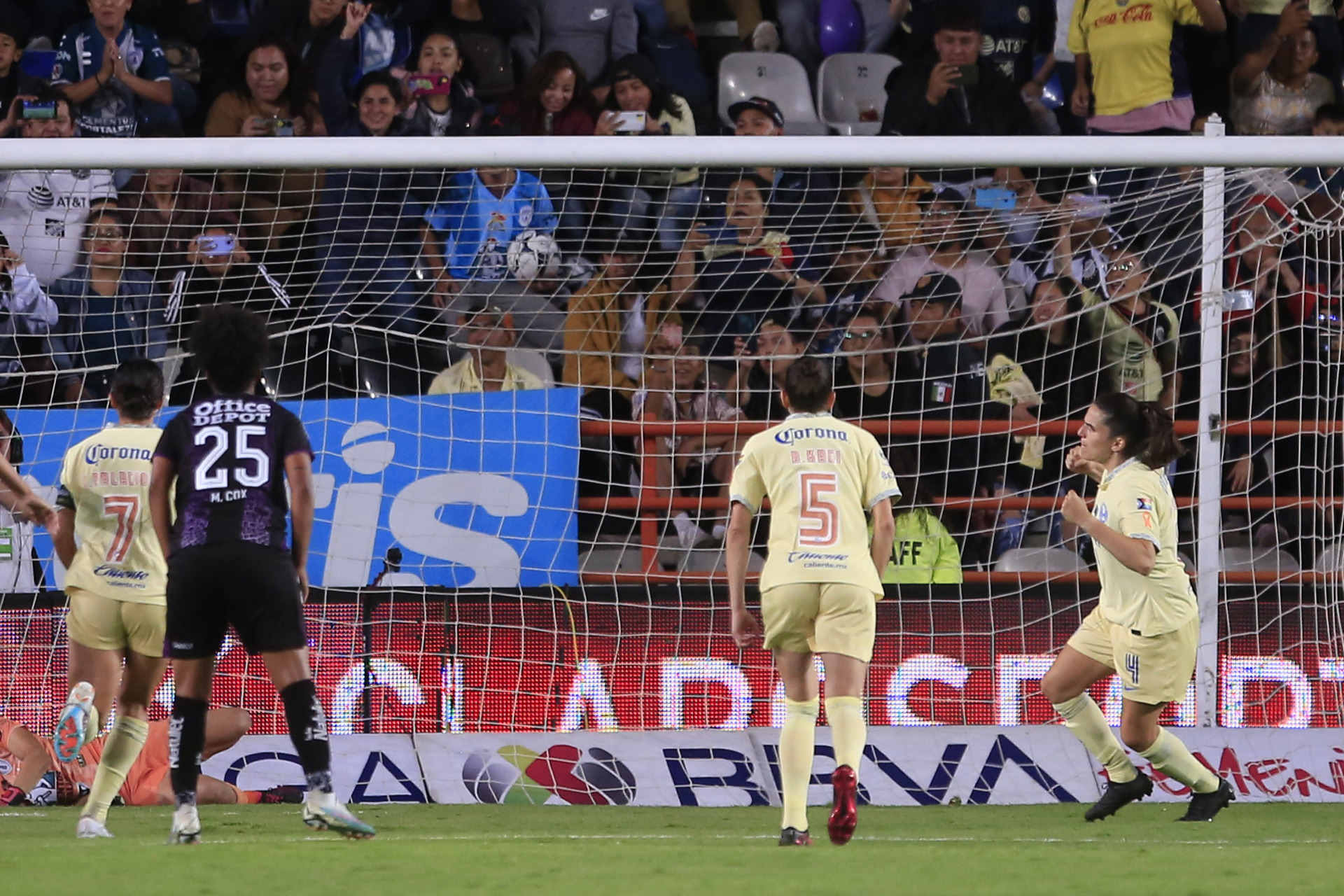 Charlyn Corral adelantó a las locales Tuzas en el primer tiempo, después de lo cual, en la segunda mitad, cayeron las anotaciones del América cortesía de Pereira y Katty Martínez.