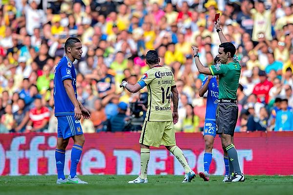 Los jugadores del América Rubens Sambueza y Darío Benedetto fueron expulsados ante Tigres, mientras que Martínez podría ser sancionado