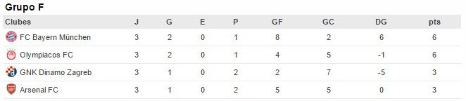 Arsenal vence al Bayern Munich - stas-grupo-f