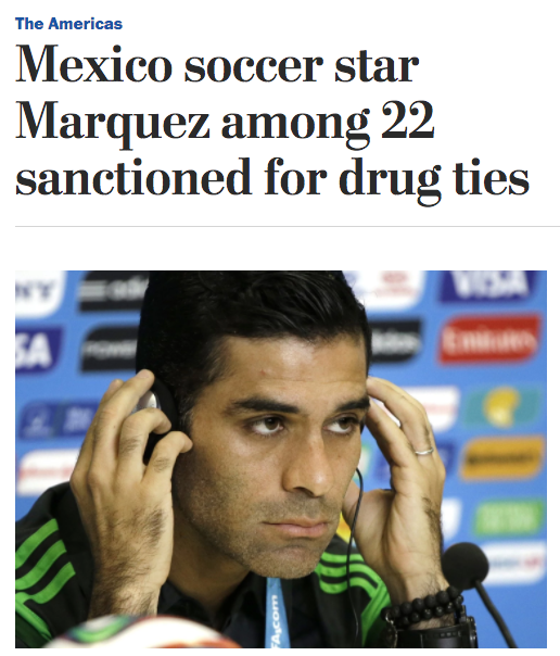 “La estrella de futbol de México, Márquez, entre los 22 sancionados por tener nexos con la droga”, The Washington Post. (Estados Unidos)