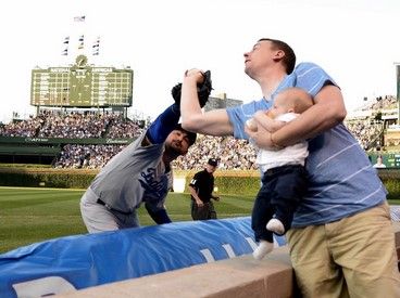 Al final, Keith Hartley, habitante de Chicago, se quedó con la pelota con la mano derecha, mientras llevaba en el brazo izquierdo a su hijo Isaac. “Simplemente le estaba dando biberón y vi que la pelota venía hacia nosotros. Lo sujeté fuerte, asegurándome de protegerlo, me puse de pie y la pelota cayó en mi mano”, dijo Hartley.