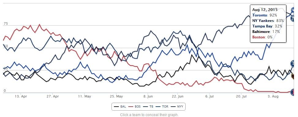 Probabilidades de los equipos de la División Este de clasificar a postemporada. Foto de MLB