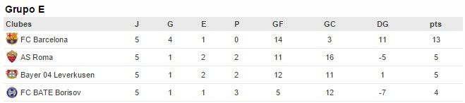 El Barcelona venció por goleada 6-1 a la Roma, y con el empate 1-1 entre el BATE Borisov y el Bayer Leverkusen, los blaugranas se quedaron con el primer lugar del Grupo E y con ello, acceden a la siguiente fase del torneo.