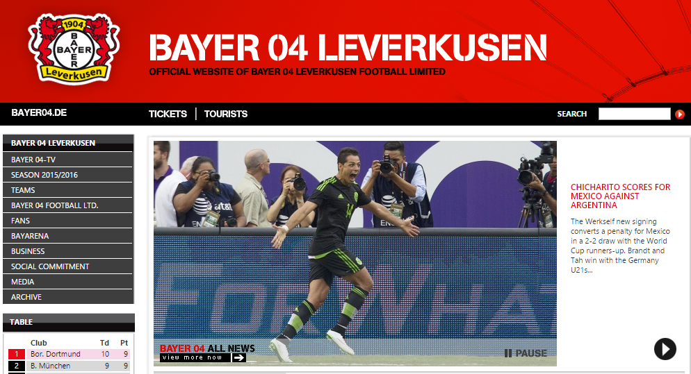 En su sitio web, el Bayer Leverkusen destacó que Chicharito marcó de penal el 1-0 al minuto 19, con lo que llegó a 41 goles y se colocó a cinco anotaciones de convertirse en el máximo anotador de la selección.