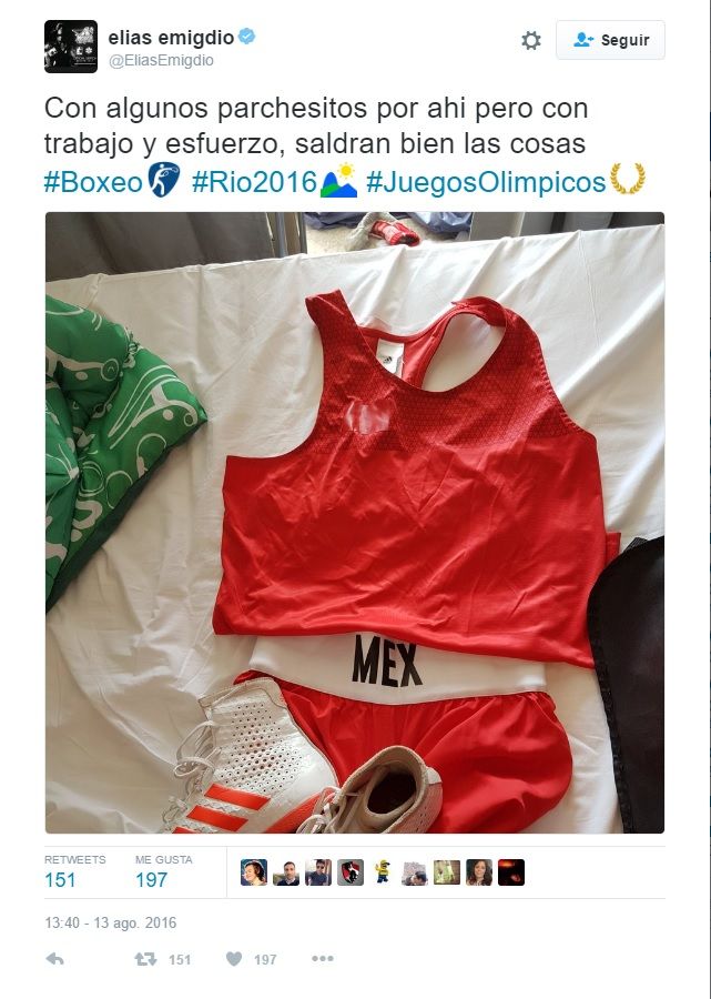 “Con algunos parchesitos por ahi pero con trabajo y esfuerzo, saldran bien las cosas #Boxeo #Rio2016 #JuegosOlimpicos”, señala su mensaje en la red social.