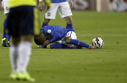 Luego de recibir numerosos golpes, el delantero fue expulsado cuando estrelló el balón en Pablo Armero, quien festejaba el triunfo de su selección una vez que el árbitro dio por terminado el partido. Neymar vio la tarjeta roja por actitud antideportiva. Antes, había sido amonestado por tocar el balón con la mano.