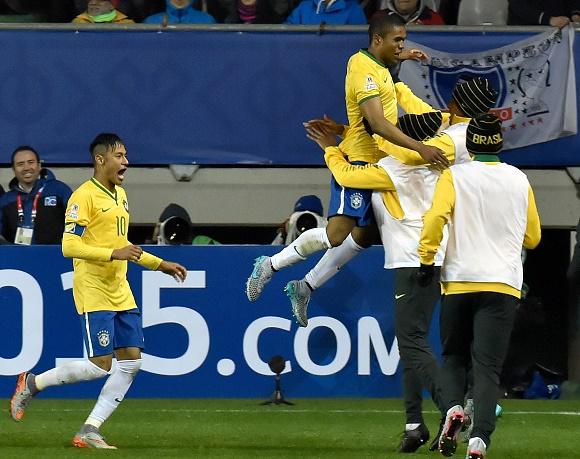 Douglas Costa anotó el gol de la diferencia a un minuto del final, luego de una gran asistencia de Neymar, con lo que Brasil aseguró el triunfo.