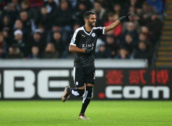 Leicester tomó la punta en solitario en la Premier League inglesa el sábado gracias a tres goles del argelino Riyad Mahrez, venciendo 0-3 al Swansea en una tarde que vio frenada en 11 la racha de Jamie Vardy de partidos con gol.