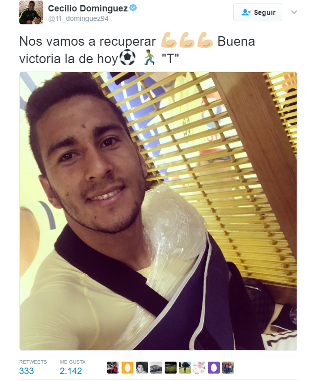 Domínguez será evaluado en los siguientes días, pero no será hasta la siguiente semana que se sepa cuánto tiempo estará fuera de actividad.