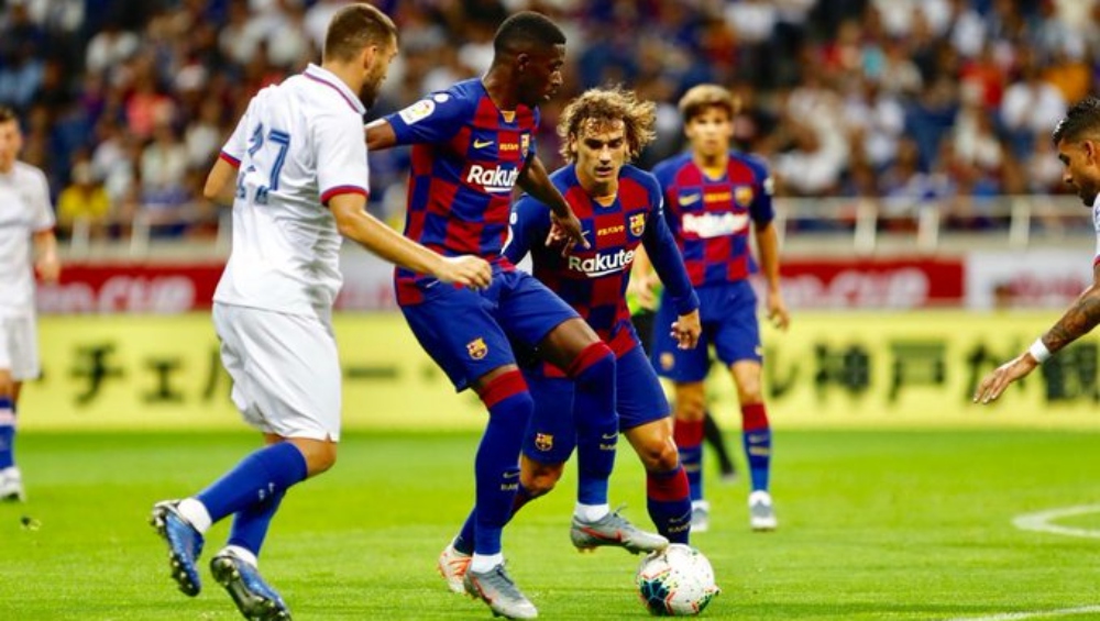 Ernesto Valverde situó a Griezmann en punta junto a Dembélé, en un once inicial donde el centro del campo lo formaban los canteranos Riqui Puig, Álex Collado y Sergi Roberto junto a Sergio Busquets.